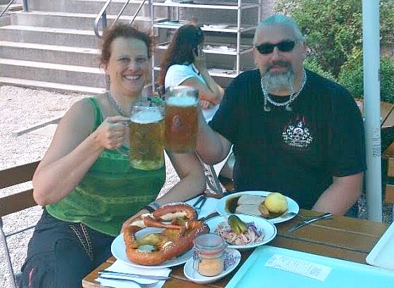 Und so sieht es aus, wenn wir Zwei im Löwenbräukeller-Biergarten schmausen.