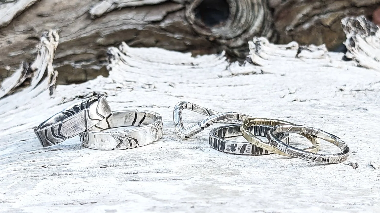 Ringe Silberstreif: Silberschmuck in allen Farben: Weiß bis schwarz und poliert bis matt.